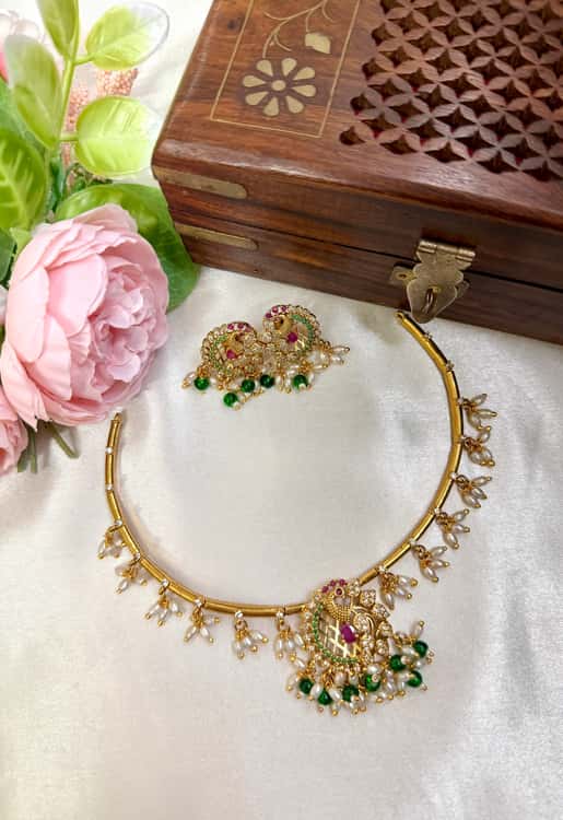 ₹ 699.00₹ 499.00Premium Mayil Hasli Necklace set
