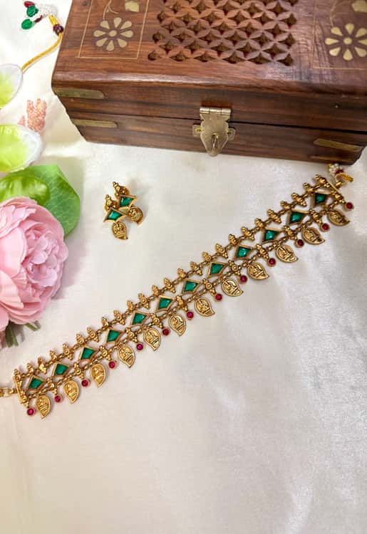 ₹ 599.00₹ 519.00Mangai kasu choker- green