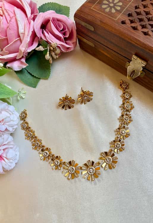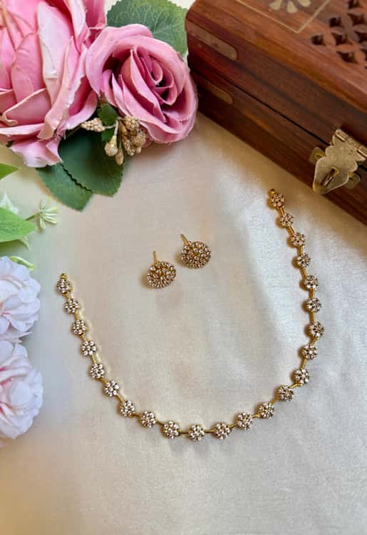 ₹ 698.00₹ 599.00Premium AD rosa necklace set