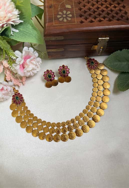 ₹ 699.00₹ 599.00Aavarna lakshmi necklace set