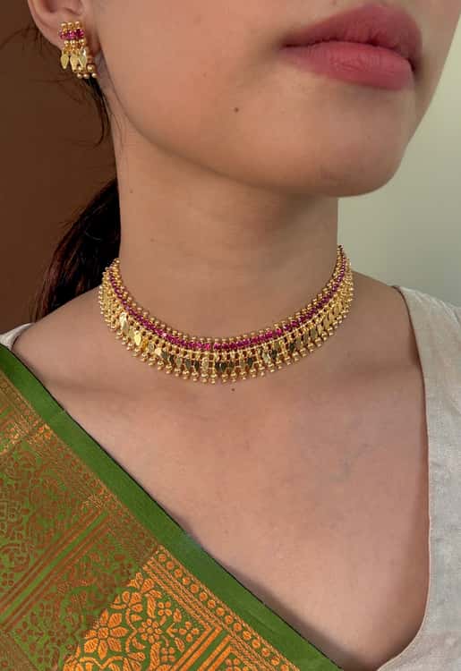 ₹ 1599.00₹ 749.00Varnika kasu choker- GREEN