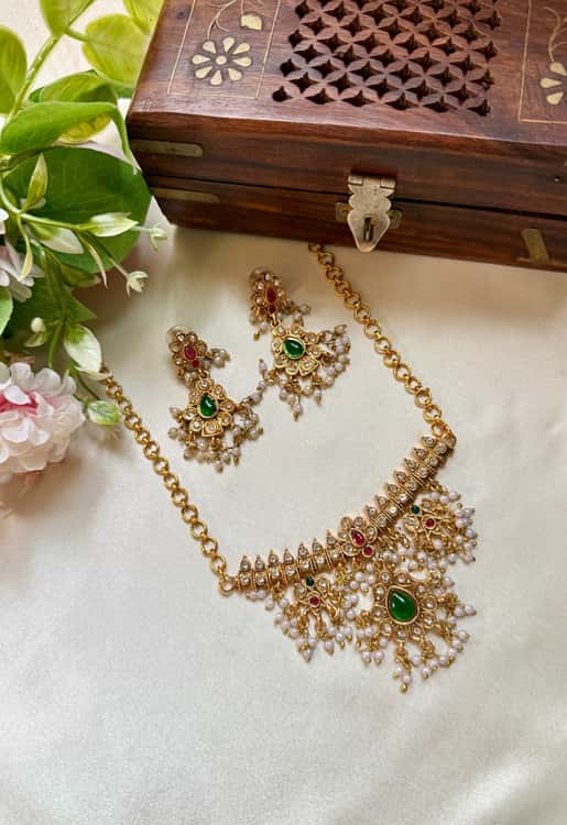 ₹ 899.00₹ 499.00Indu Pearls necklace set